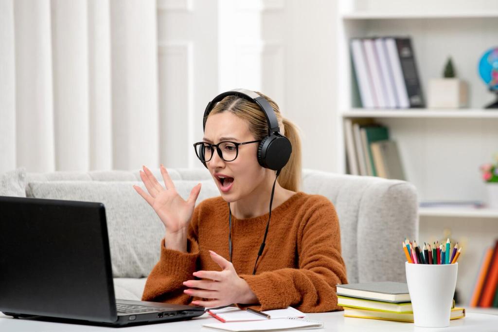 Täglich fünfzehn Minuten aktive Wiederholung plus zwei Clubtermine pro Woche schlagen seltene XXL-Sessions. Plane Erinnerungen, parke Vokabeln sichtbar, und teile Fortschritte im Clubforum – Verantwortung wird so zur gemeinsamen Gewohnheit.